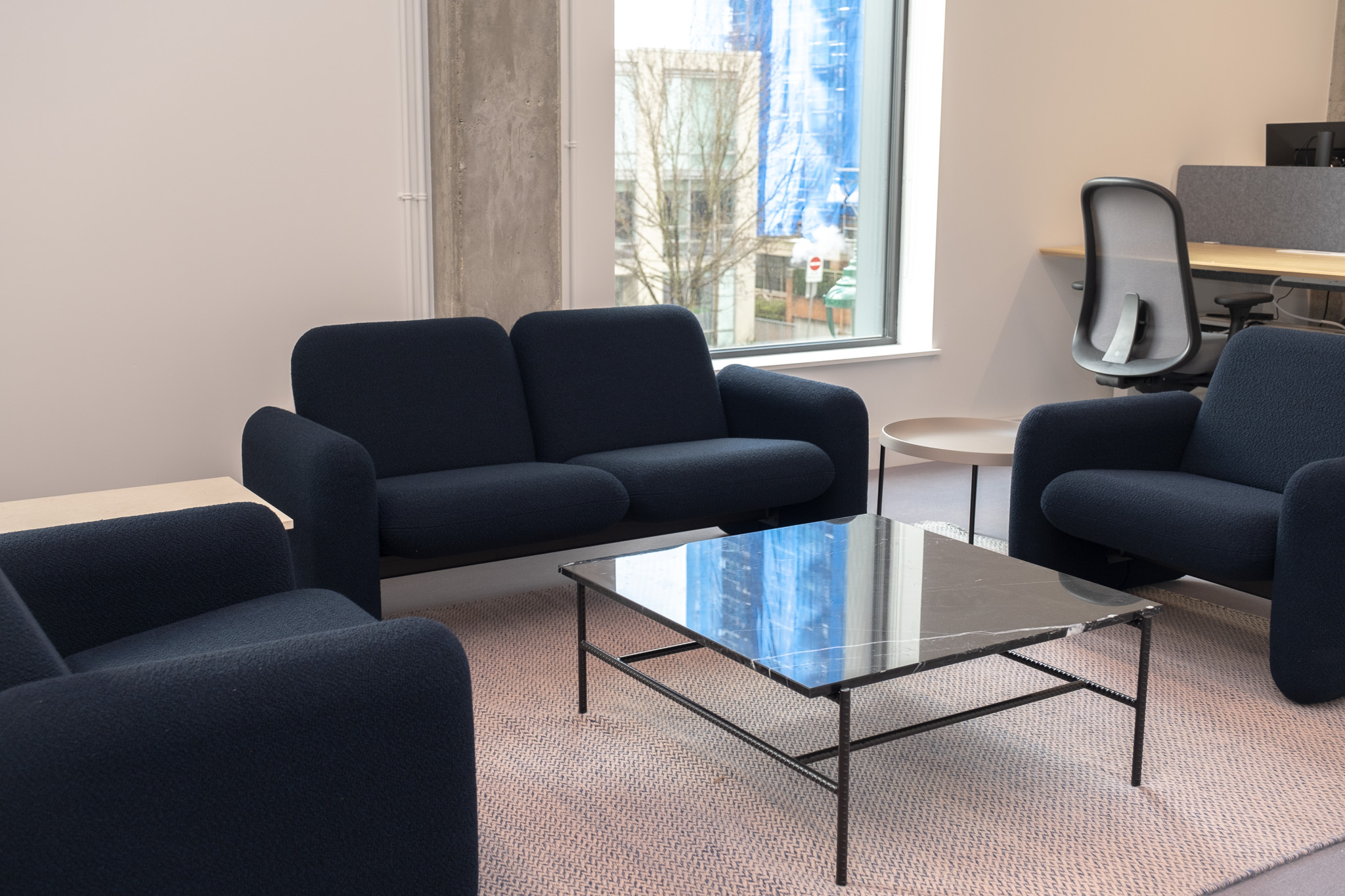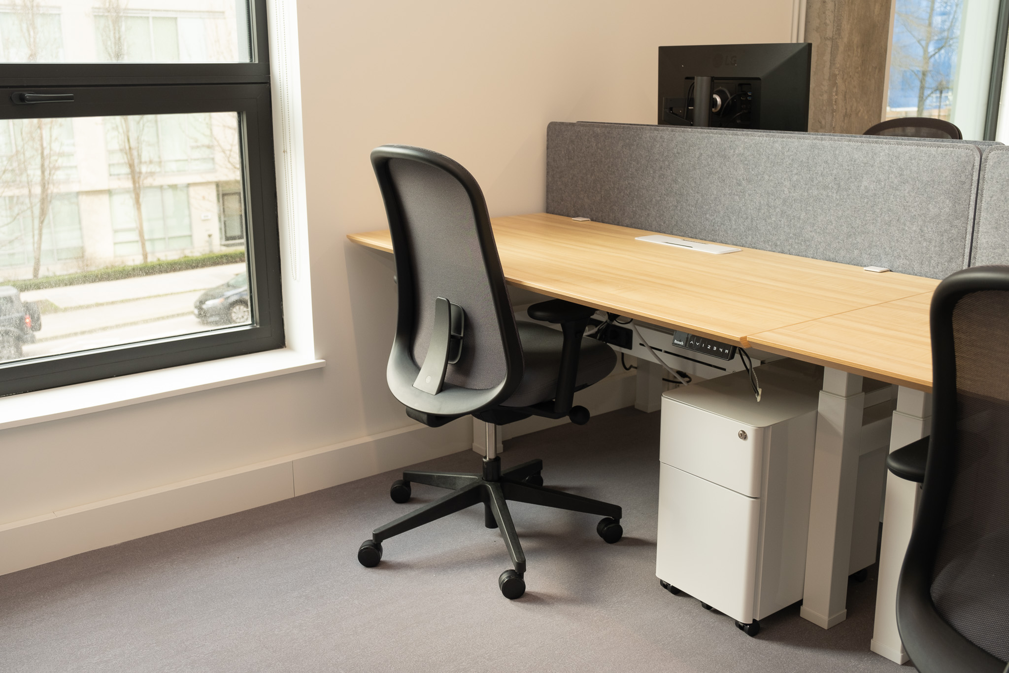 | Desks | • Unlimited single daily desk booking • Ergonomic sit-stand desks with power bars (Branch Furniture) • Fully adjustable office chairs (Herman Miller Lino) • 4K monitors compatible with PC or MAC laptops, with 60w power-delivery (LG) – bring your keyboard & mouse | ![]() |